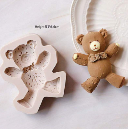 Happy dancing Teddy Bear with bow silicone mould