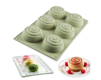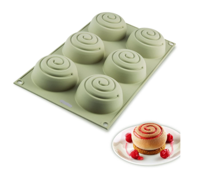 6 Cavity Silicone Spiral Shape Cake Mould for Mousse Dessert Baking All Purpose Mould (Out Put Weight Approx: 100 Grams)