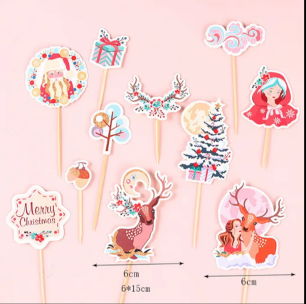 10 pcs Christmas theme cake Cupcake topper set style 18