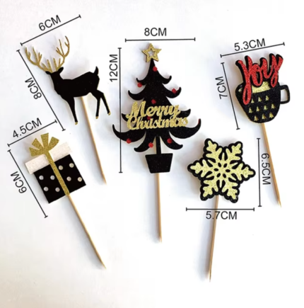 5 pcs Christmas Theme cake cupcake topper set (Yellow) STYLE 12