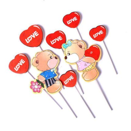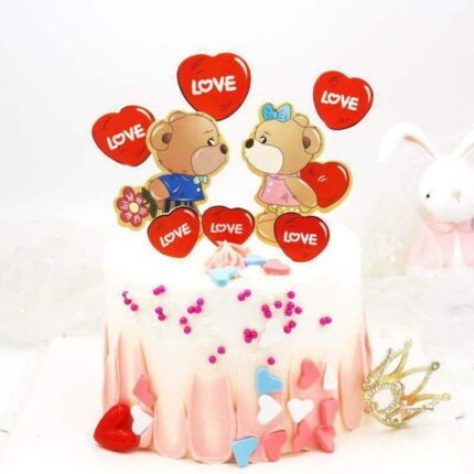 8PCs Cute Love Red Heart Couple Bear Valentine’s Day Cake Topper Set