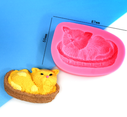 Cat sitting in basket silicone mould