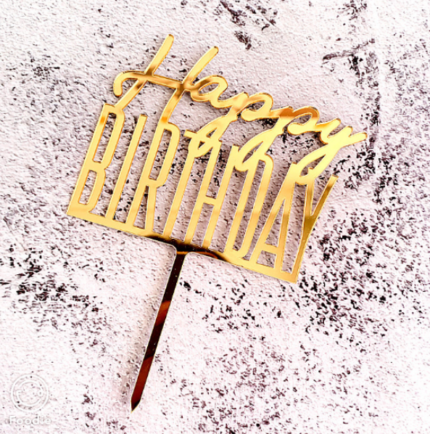 Happy Birthday Golden Acrylic Cake Toppers