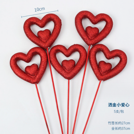 1 pcs double red heart cake topper