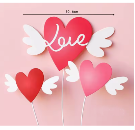 3 pcs Love heart with wings cake topper set STYLE 1