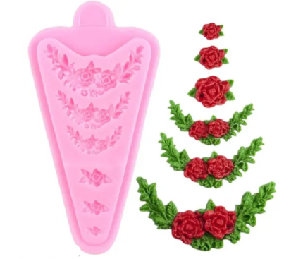6 Cavity Rose flower border silicone mould