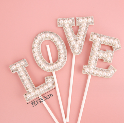 1 pcs Love pearl studded cake cupcake topper
