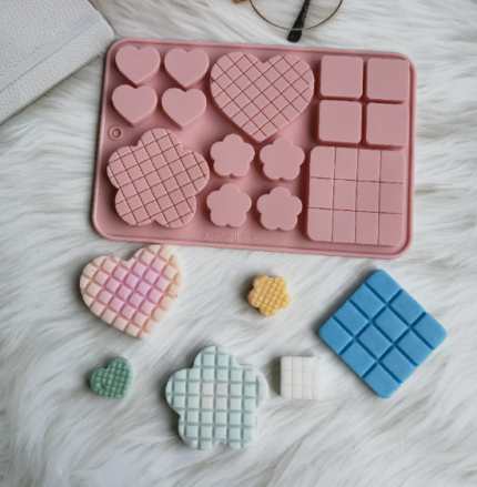 3D Silicone Waffle Chocolate Mould – Heart Flower Square Candy Mould