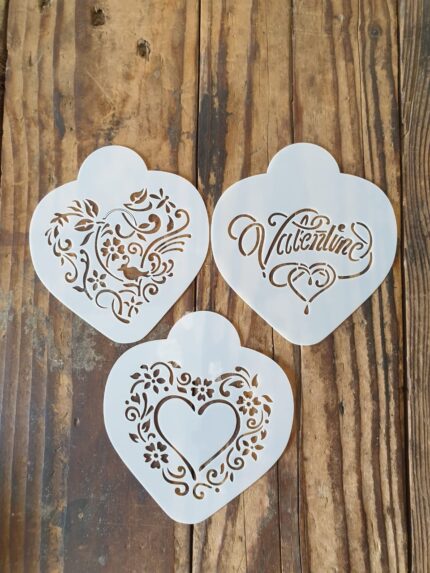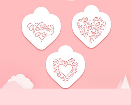 3 pcs Valentine heart theme icing stencil set