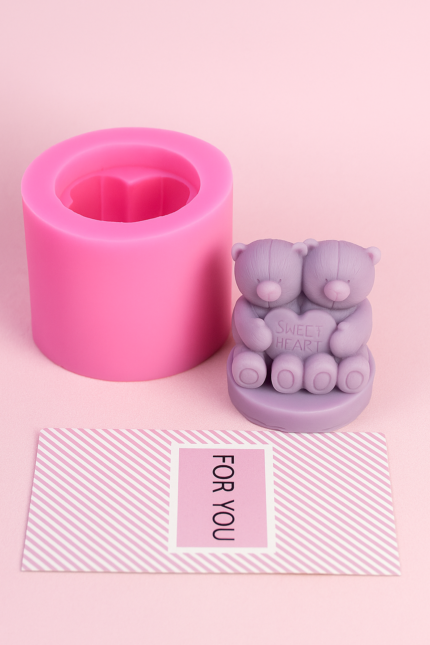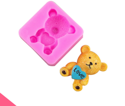2 pcs set Teddy holding heart theme silicone mould