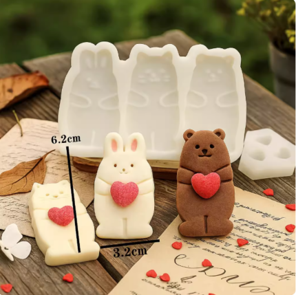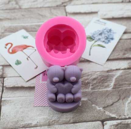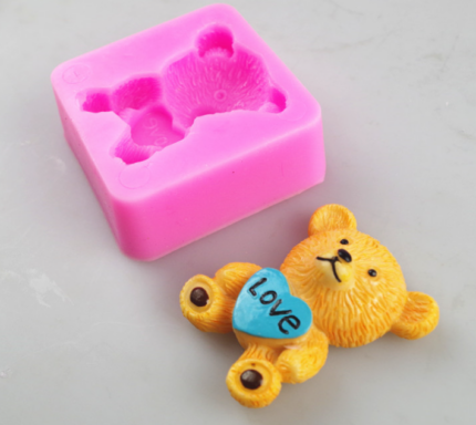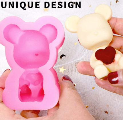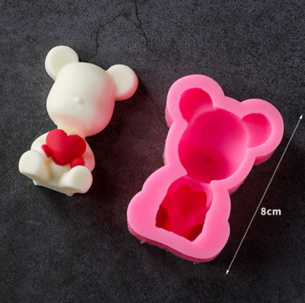 3D Teddy Bear Holding heart silicone mould