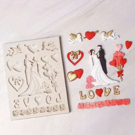 Couple heart theme silicone mould