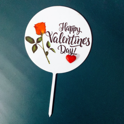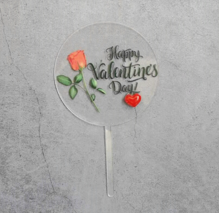 Heart shape Rose Acrylic Cake Toppers (happy rose day cake topper )