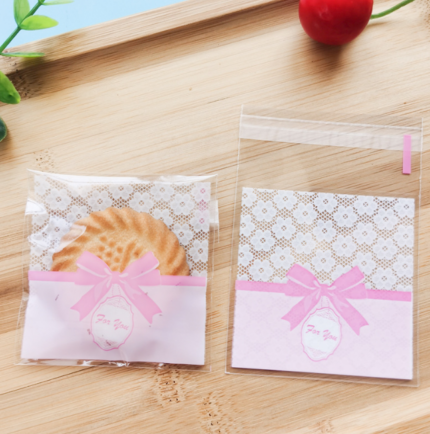 Lace with Pink Bow for you 100pcs Cookie Candy Sleeve