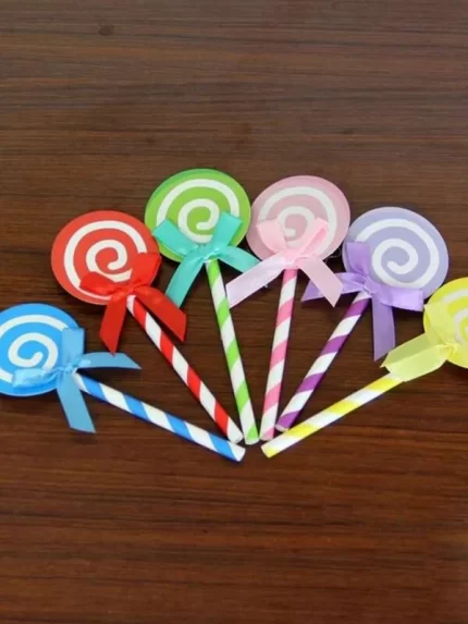 6pcs/set Plastic Cake Top Decoration, Lollipop Design Cake Topper