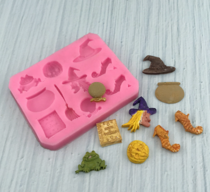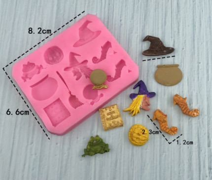 Pumpkin Witch Shoes Hat Magic book Broom Shape Halloween Silicone Moulds