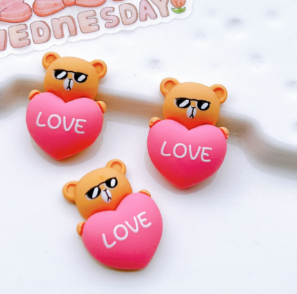 3 pcs Small teddy holding red heart cake topper set
