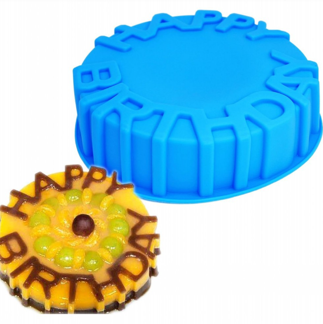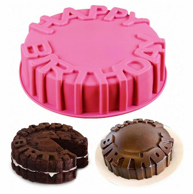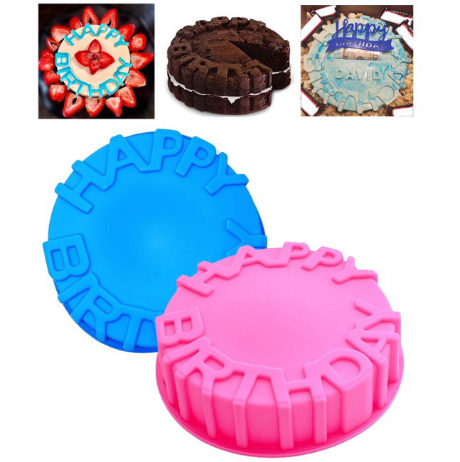 1 Happy Birthday Baking Pan Round Mousse Silicone Mold DIY Cake Baking Tray Tools