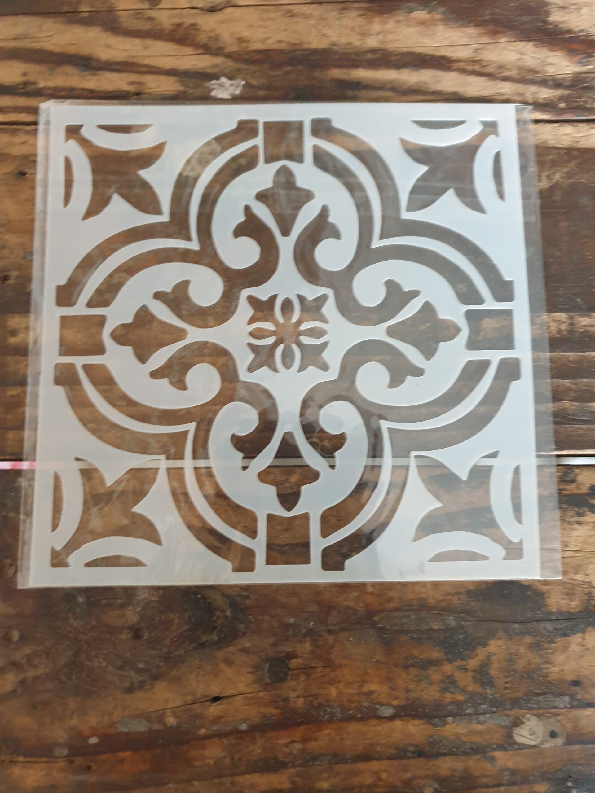 TIP:If your stencil gets a bend, just lay it in a sheet pan and pour boiling water over it to help flatten it.