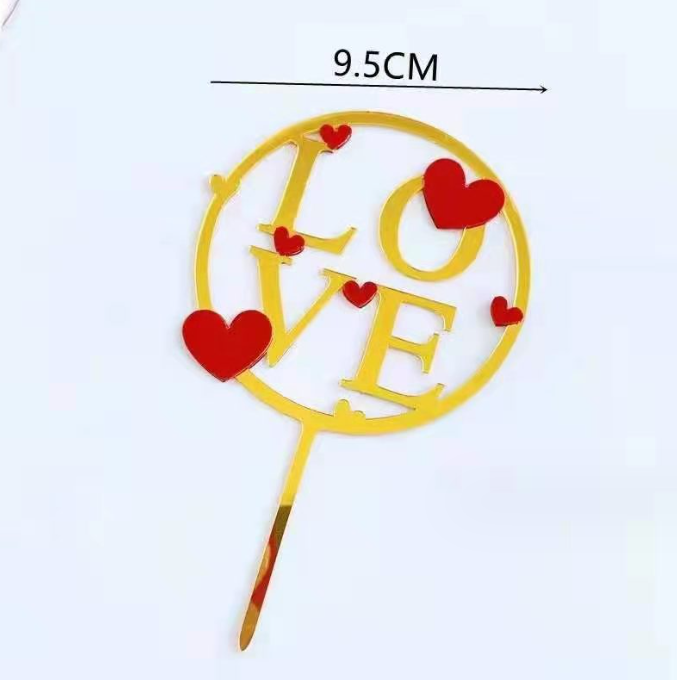 1 pcs golden love with red heart cake topper