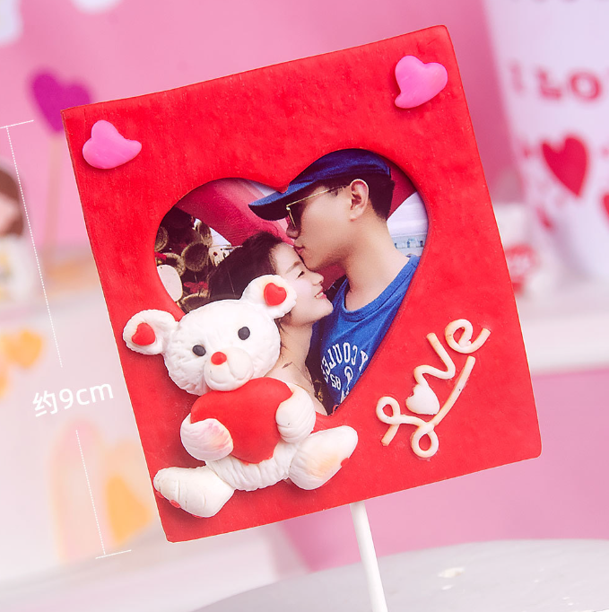 1 pcs red 3d teddy love photo frame cake topper