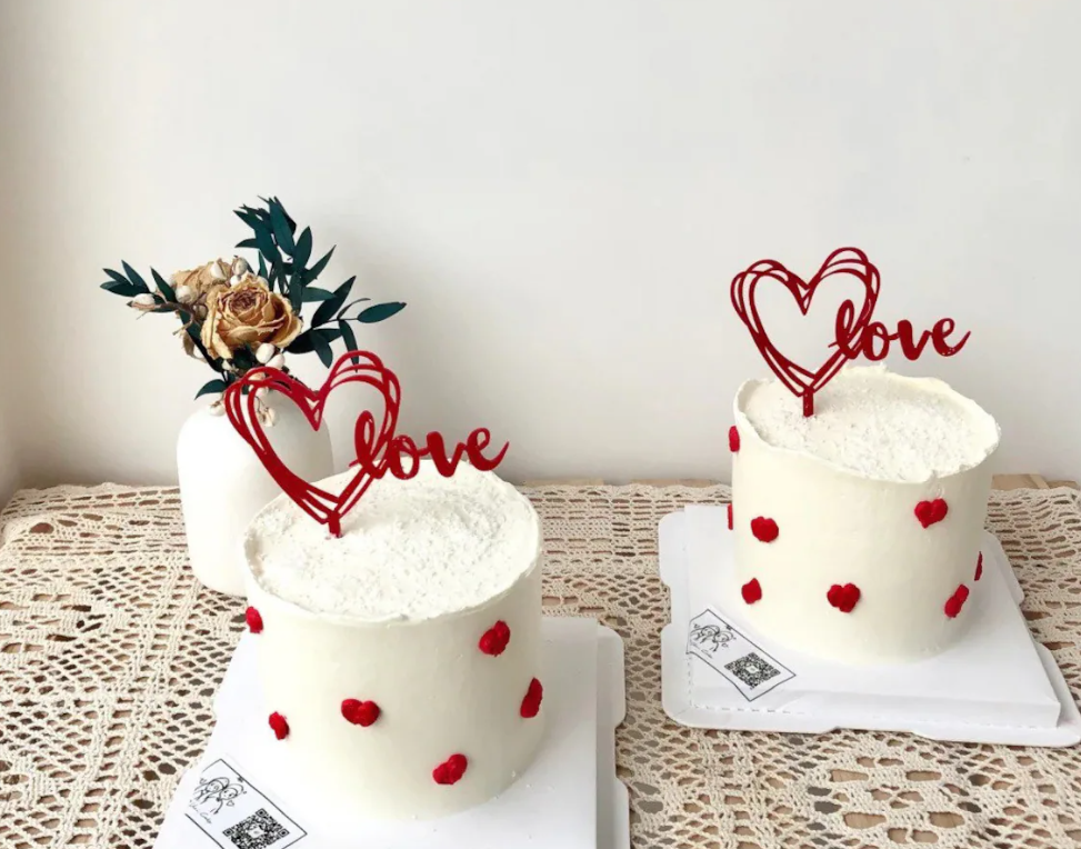 1 pcs red heart love cake topper