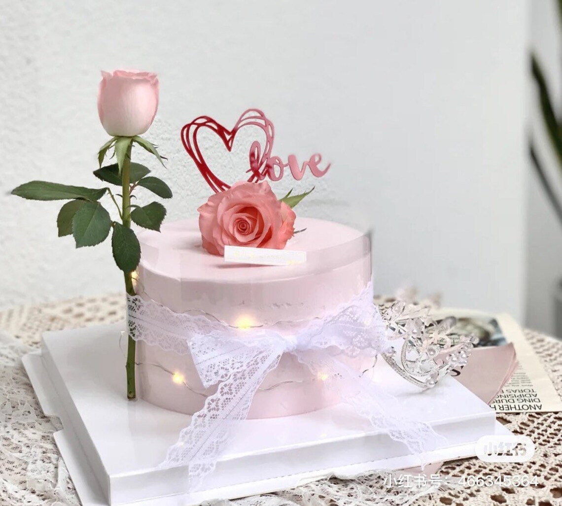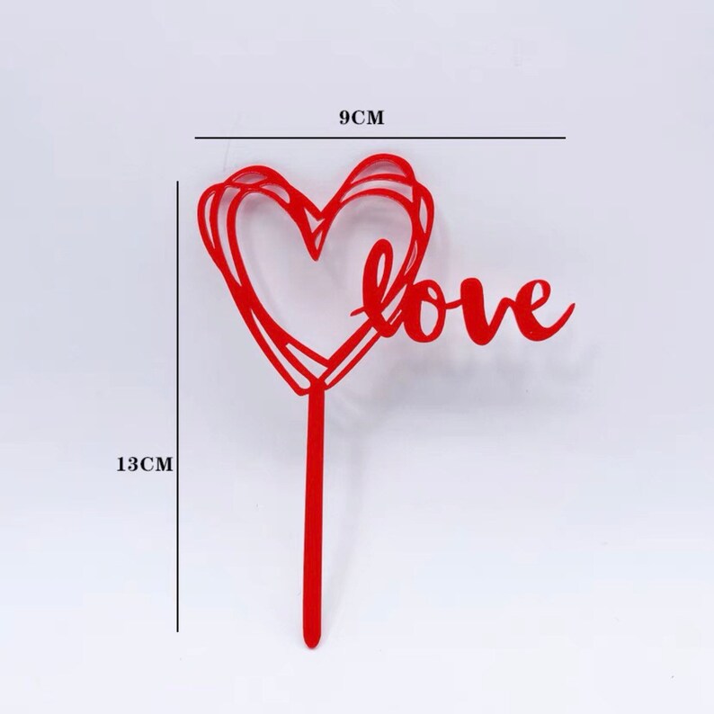 1 pcs Double acrylic red heart i love you cake topper
