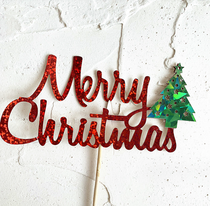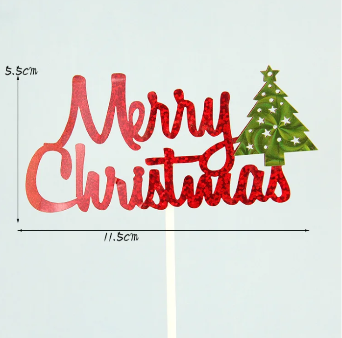 1 pcs red Merry Christmas cake topper