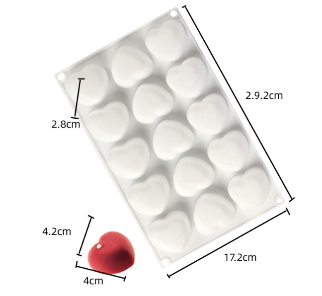 15 cavity heart Silicone Mould for mousse, baking, desserts etc