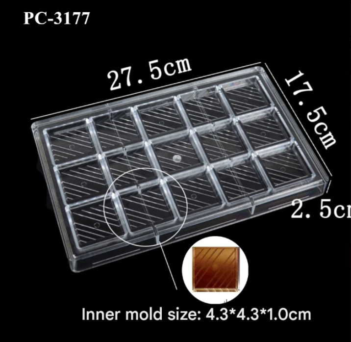 15 Cavity Square Shape Polycarbonate Chocolate Mould