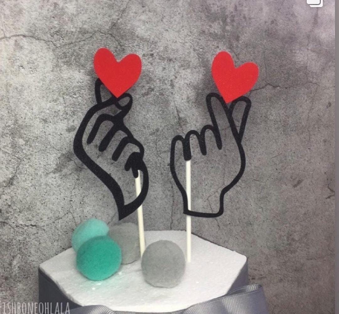 Home Valentine Toppers 2 pcs Finger crossed with holding heart cake topper set