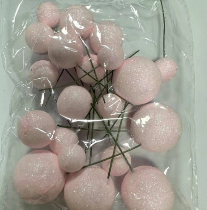 Home Faux Balls 20 pcs Glitter Light Pink round mixed sizes faux balls
