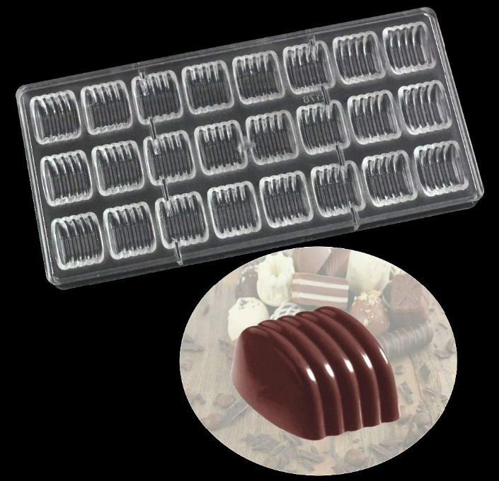 24 Cavity Ribbed Shape Polycarbonate Chocolate Mould