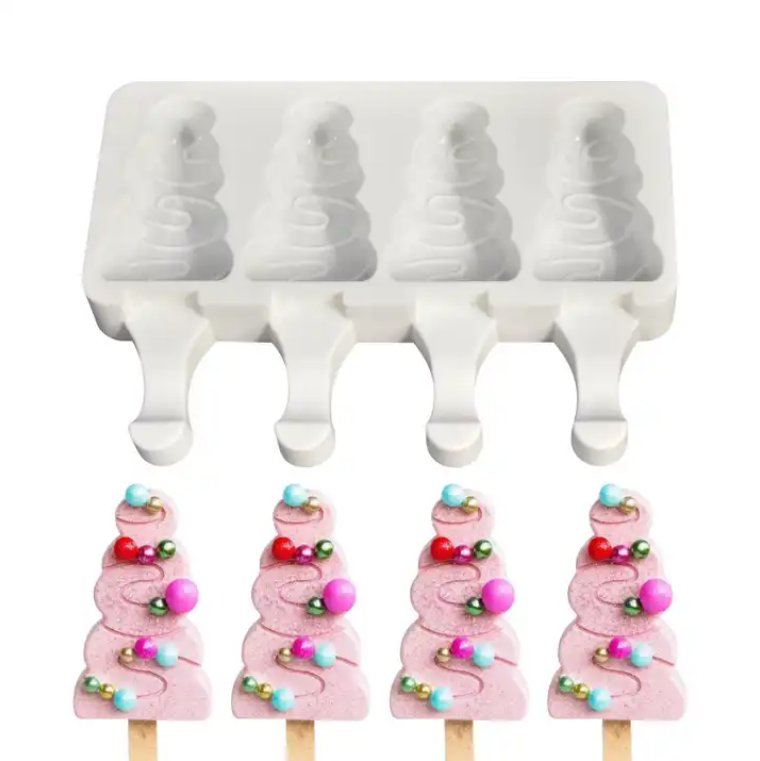 3 cavity Christmas Tree Popsicle Mould Ice Pop Mould