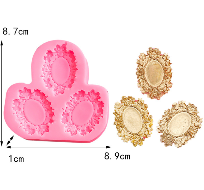 Home Buy Silicone Fondant Moulds Online | Premium Cake Decorating Moulds 3 Cavity oval Mirror Frame Silicone Mould