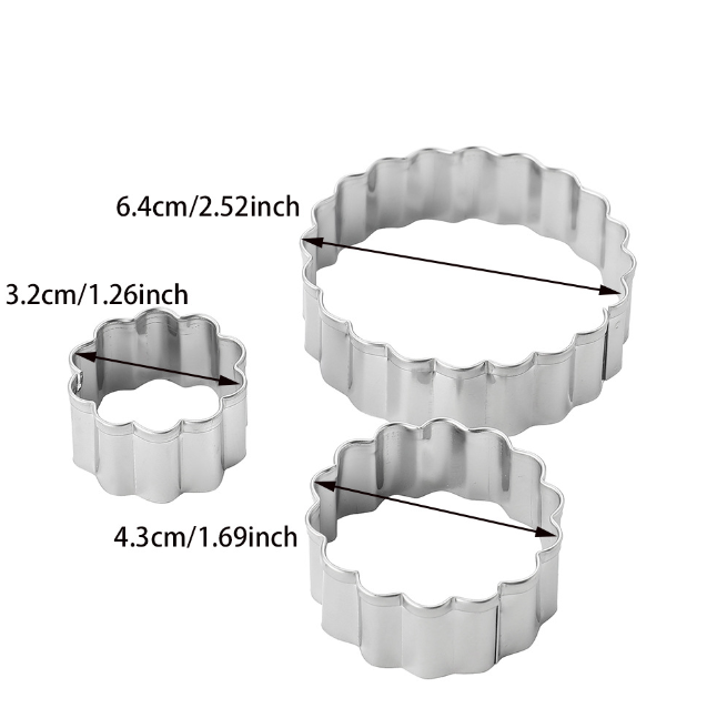 3 Pcs Carnation Petal Fondant Sugar craft Stainless Steel Cutter set Style 2