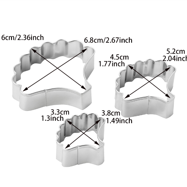 3 Pcs Holly Leaf Fondant Sugarcraft Stainless Steel Cutter set