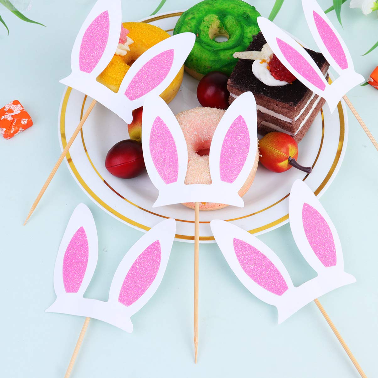 3 pcs Glitter Rabbit Ear bunny ear Cake / cupcake Topper