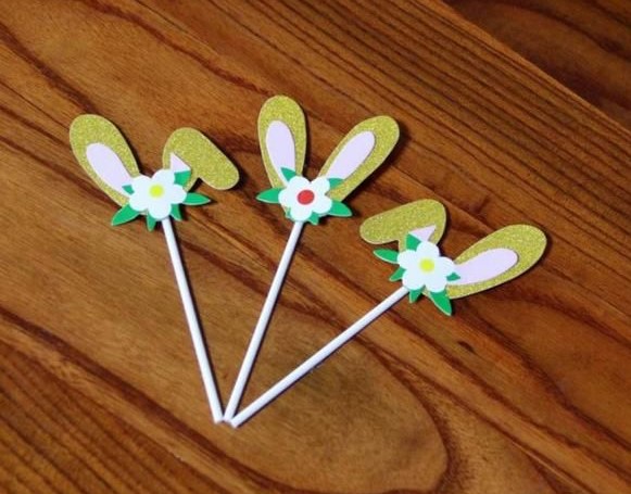 Home Toppers - Paper 3 pcs Golden Easter Bunny Ears Cake Topper Decoration