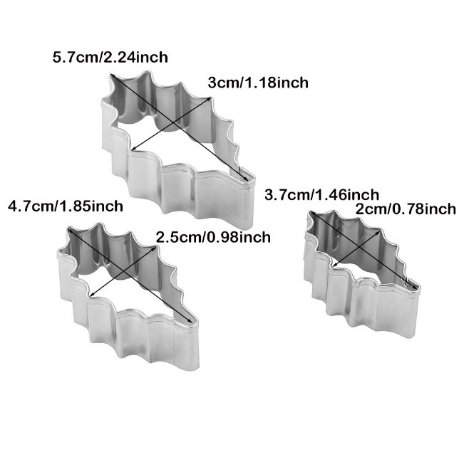 3 Pcs Holly Leaf Fondant Sugarcraft Stainless Steel Cutter set