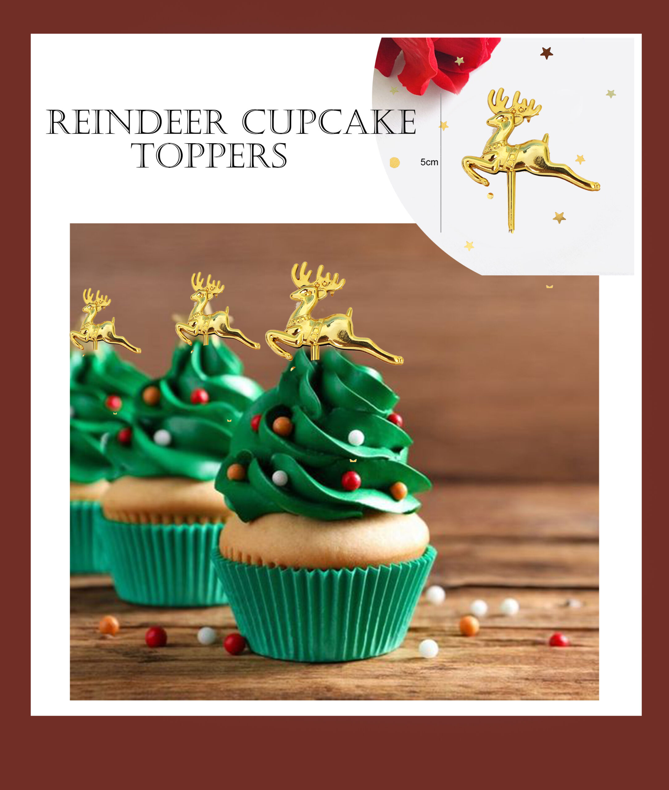 Home Christmas 3 pcs Reindeer Christmas theme cupcake topper