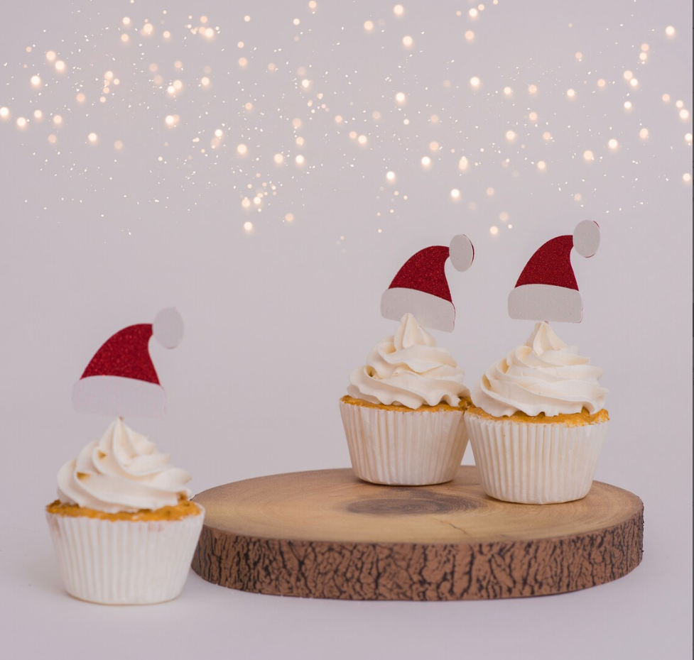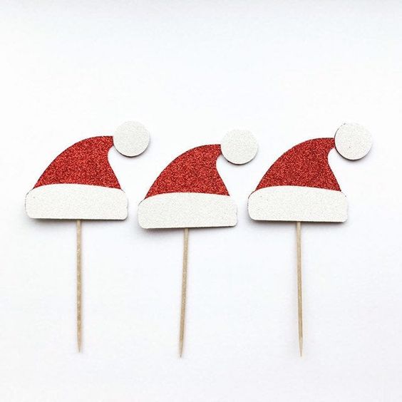 3 pcs santa Christmas hat cupcake topper