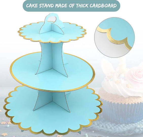 3 Tiers Cupcake Stand Cardboard Cake Holder Cupcake stand ( Blue)