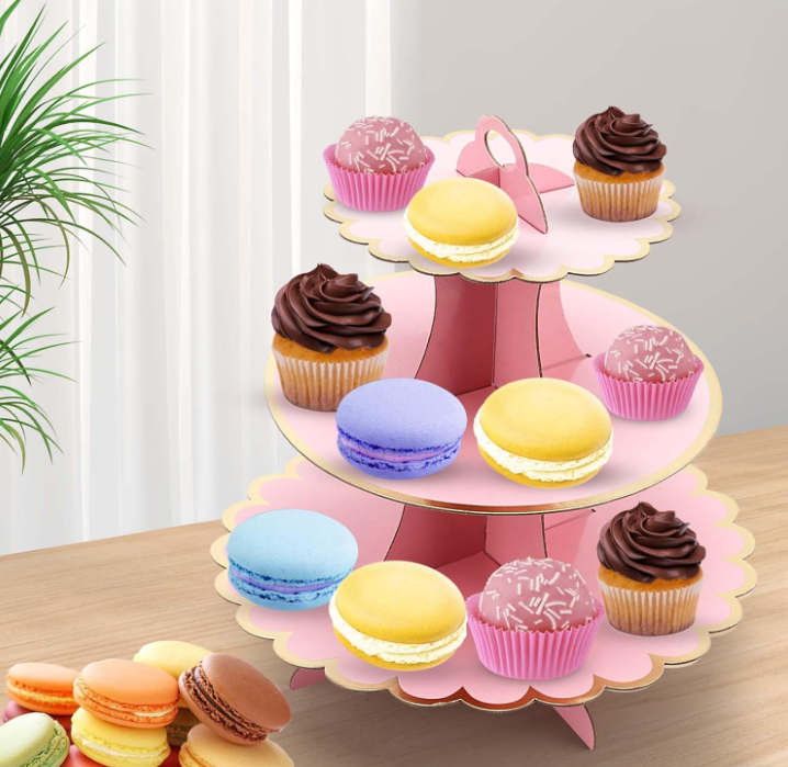3 Tiers Cupcake Stand Cardboard Cake Holder Cupcake stand ( Pink)