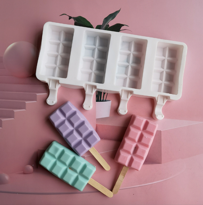Home Popsicle Mould 4 Cavity Rectangle ice cream theme Silicone Popsicle Cakesicle Mould