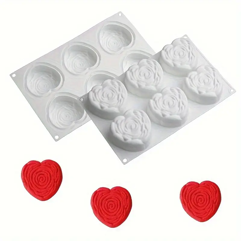 Home Soap Moulds 6 cavity Design embossed heart shaped Silicone Mould for mousse, baking, desserts entremet mould