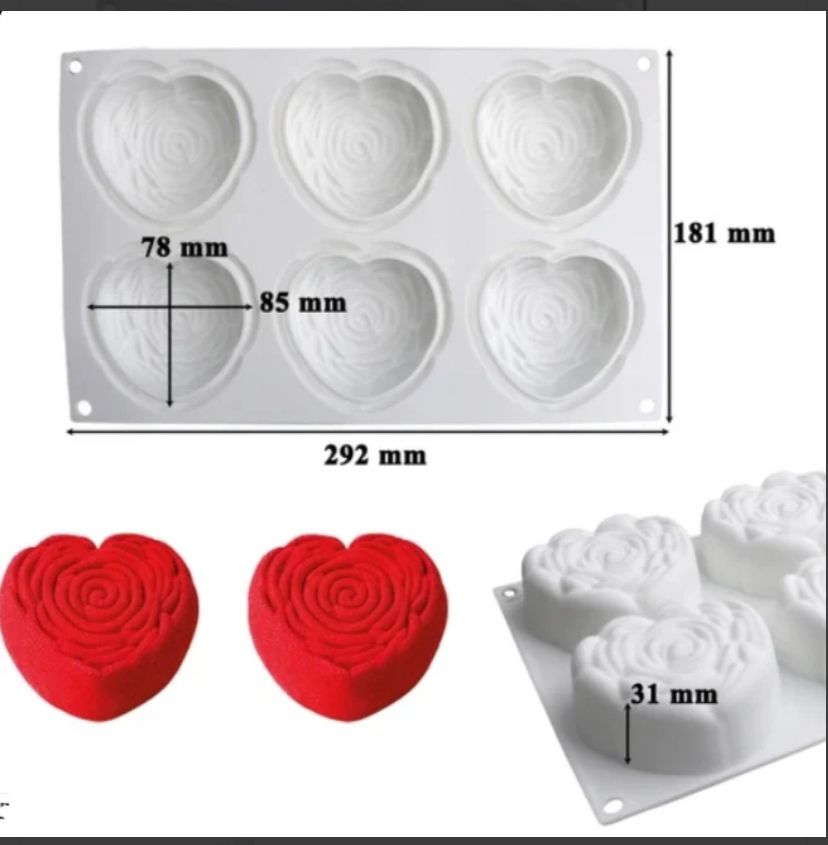 6 cavity Design embossed heart shaped Silicone Mould for mousse, baking, desserts entremet mould