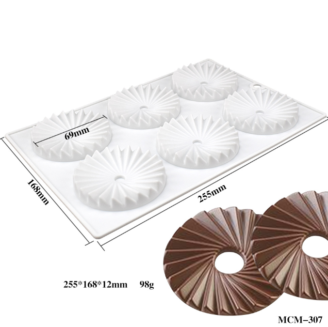 Home chocolate garnish mould 6 Cavity origami Spiral Design Round Ring Silicone Mould Insert Decor Mousse Cake Decorating Chocolate entremet mould