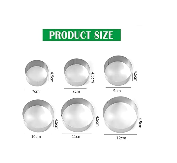 - Cookie Cutters set:The set includes 6pcs round cookie cutters in different sizes(7/8/9/10/11/12cm in diameter, 4.5cm in height).