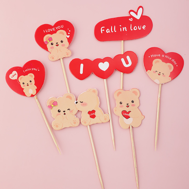 7 pcs Valentines Teddy Love Couple theme Cake topper set